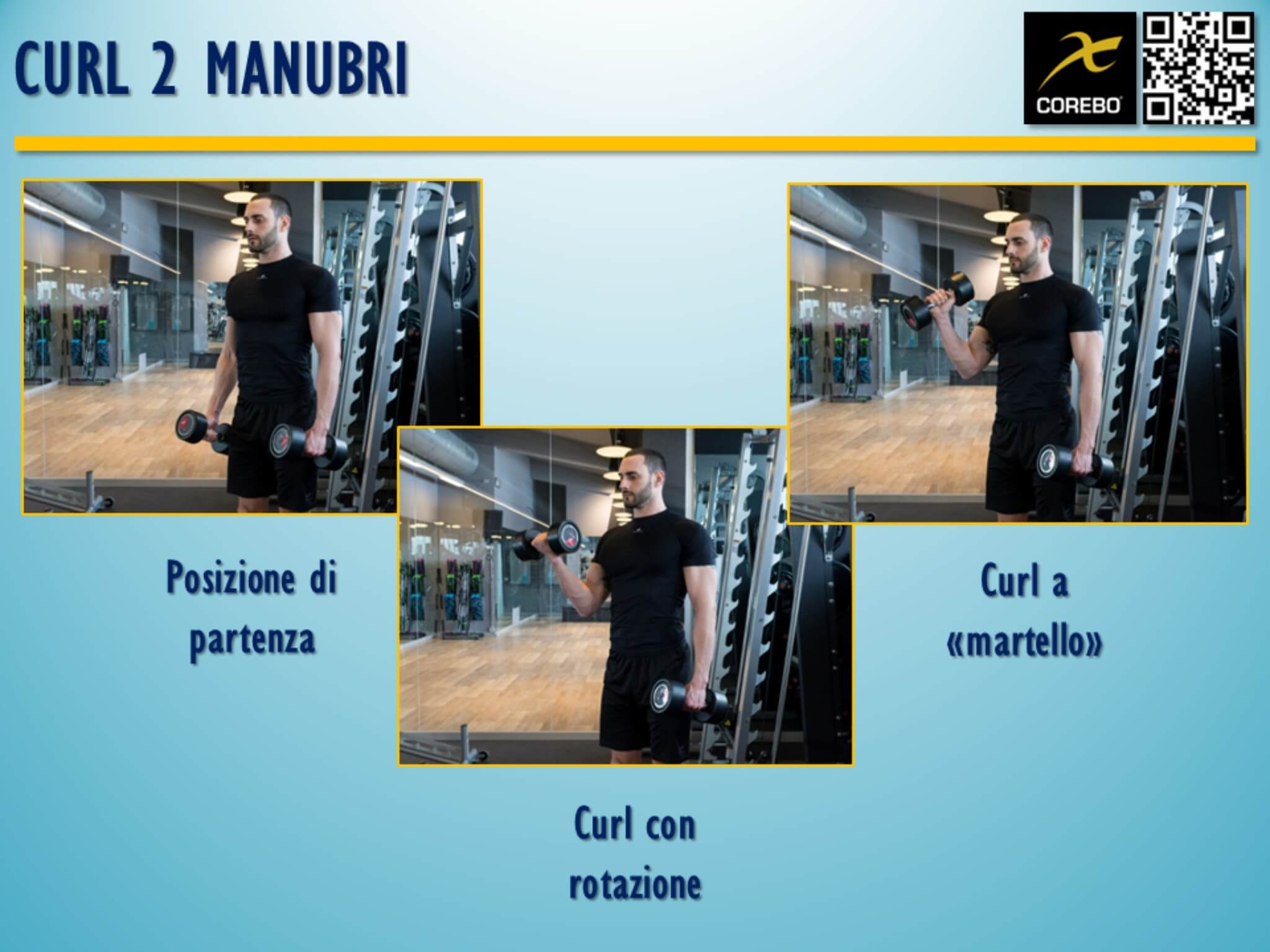 Il bicipite brachiale svolgerà anche un’altra azione, infatti durante la rotazione del manubrio si riesce a sollecitarlo meglio, permettendo così alla porzione distale di contrarsi completamente. Questo avviene perché, effettuando una prono-supinazione dell’avambraccio, il bicipite si occuperà di svolgere tale movimento. Anche il brachioradiale è implicato in questa azione poiché, nel momento in cui il soggetto non sarà più in grado di eseguire una rotazione completa dell’avambraccio, il brachioradiale stabilizzerà la posizione chiamata “a martello”.