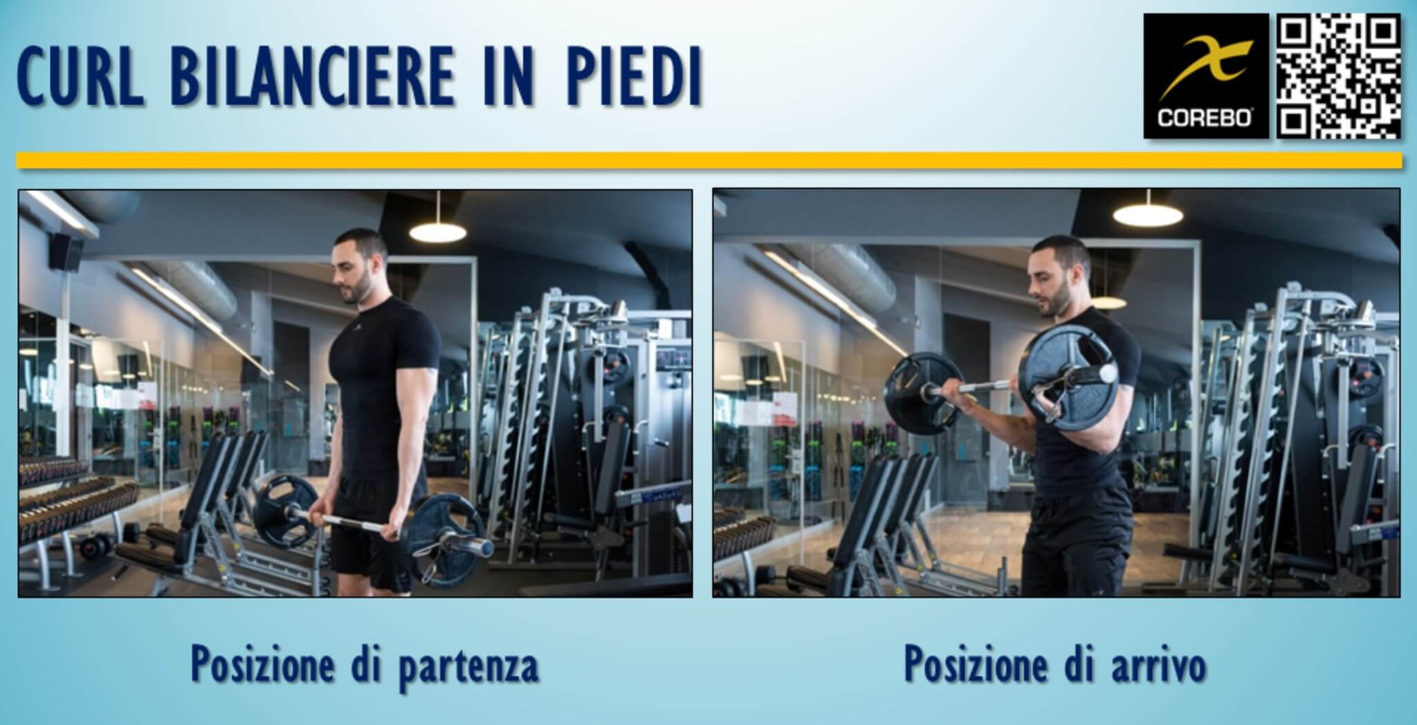Il curl con il bilanciere, è spesso considerato l’esercizio principale quando si parla di muscolazione dei bicipiti. E’ un movimento che implica l’utilizzo del bicipite brachiale, brachiale, brachioradiale e coracobrachiale.