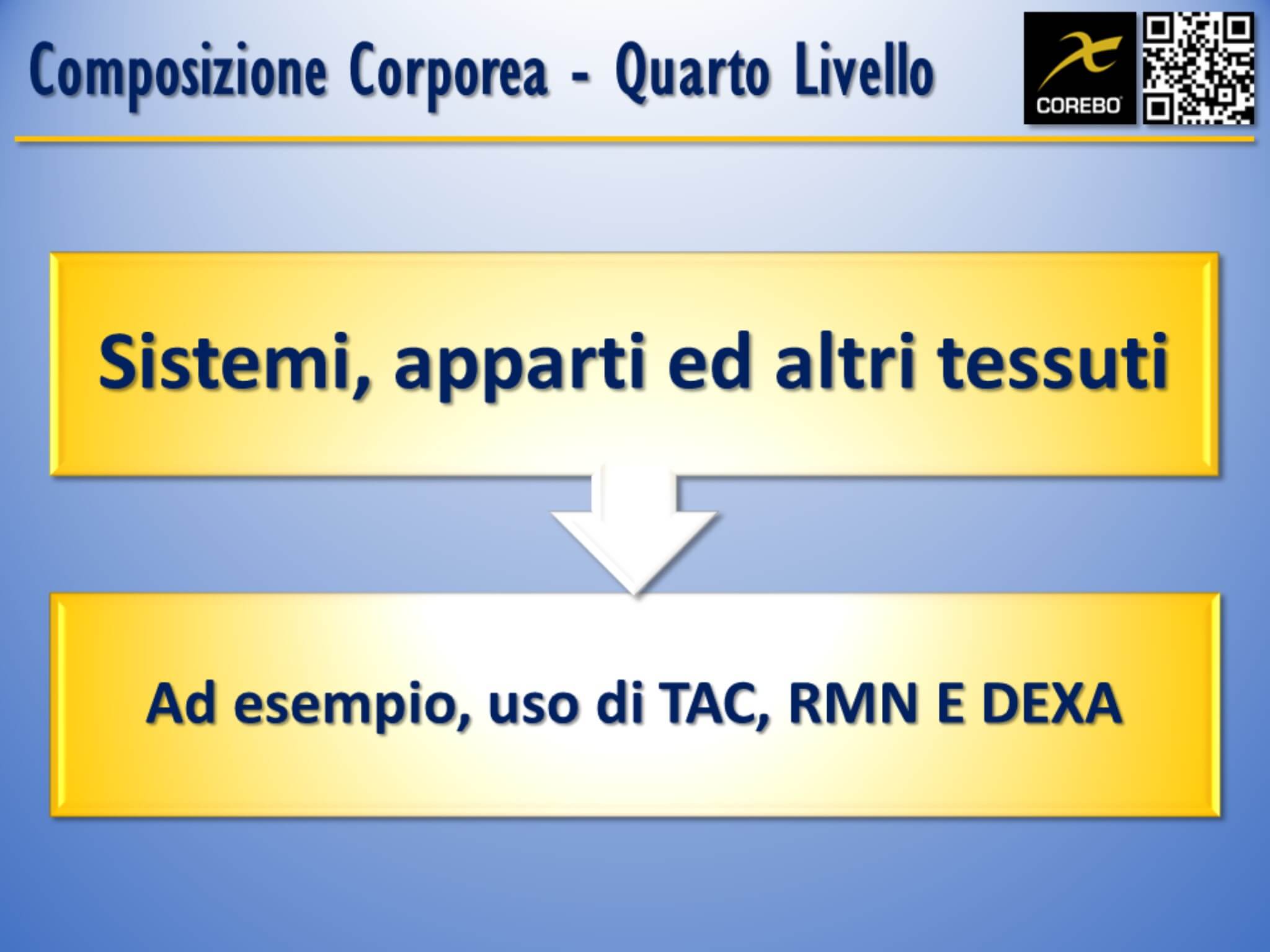 Di fronte alla vastità di questa materia nel 1992 è stato proposto un modello di analisi della composizione corporea suddivisa in 5 livelli (Wang ZM, Pierson RN Jr, Heymsfield SB, 1992). Di seguito, è riportata una rappresentazione grafica di questo modello.