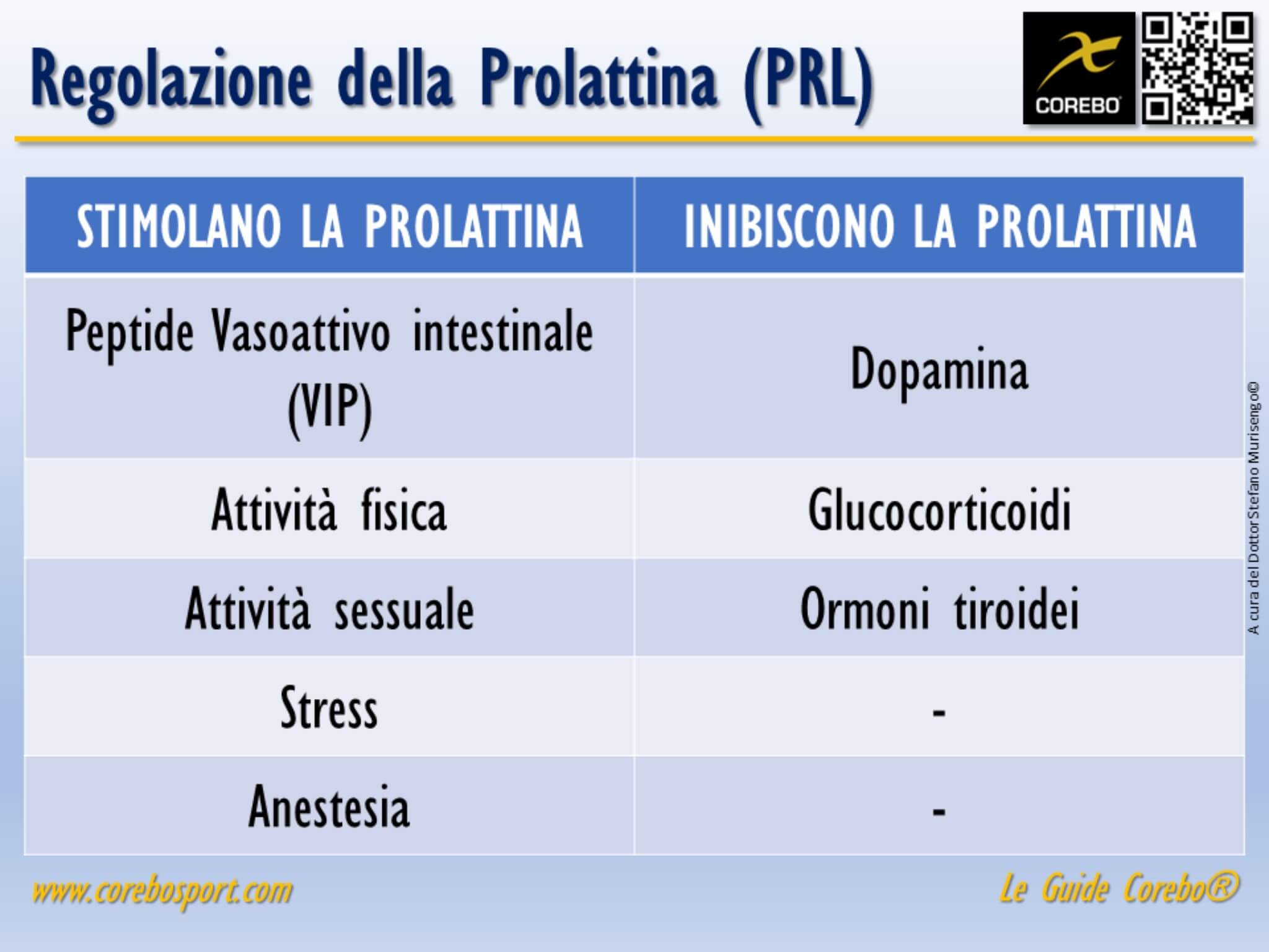 La sostanza che inibisce la produzione di PRL è la dopamina, pertanto esiste uno stretto controllo da parte del sistema endocrino in condizioni fisiologiche.