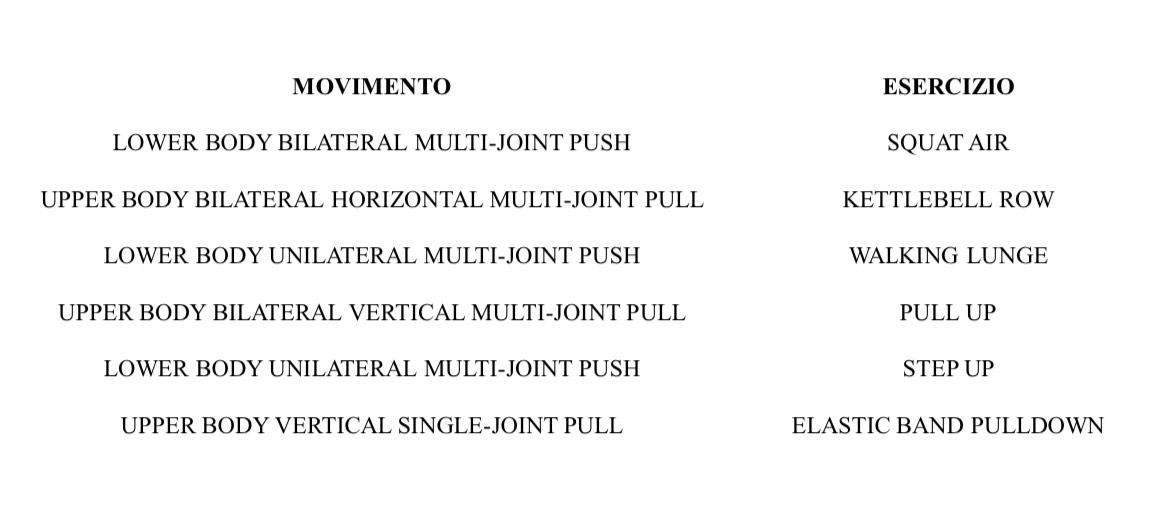 Ragionare in questi termini ci permette di strutturare gli allenamenti orientandoli a specifici obiettivi. Lo scopo principale non è più l’allenamento del quadricipite femorale e del gran dorsale, ma la spinta degli arti inferiori e la tirata degli arti superiori.