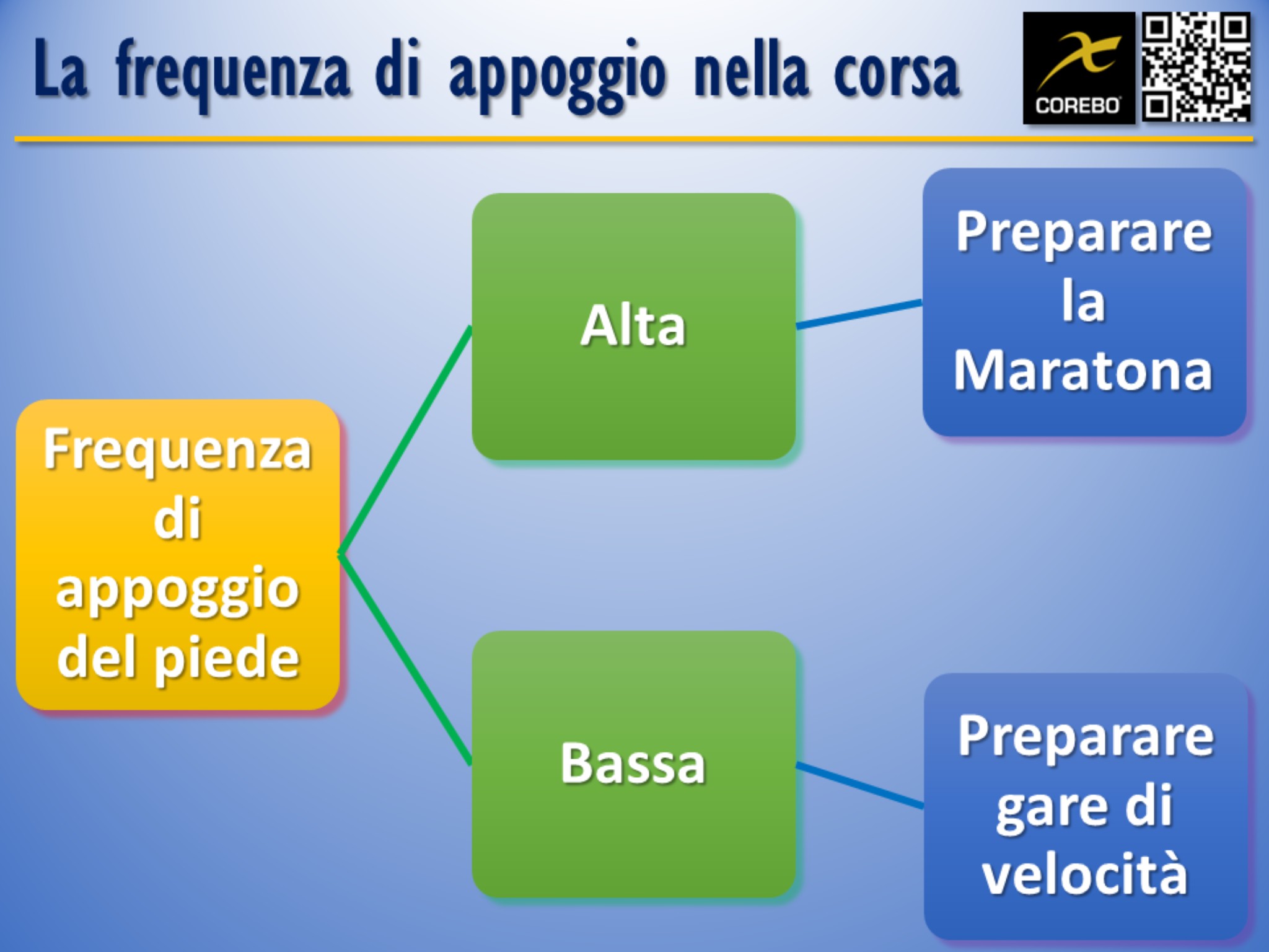 Se dovrò preparare la maratona, sarà importante avere una frequenza di appoggi molto elevata e tenere di conseguenza il baricentro basso per disperdere meno energie. Al contrario, se dovrò preparare gare di velocità o di mezzofondo veloce, potrò permettermi di correre con un’alta oscillazione verticale.